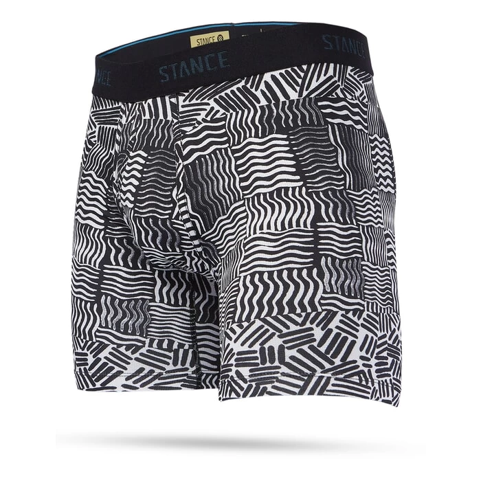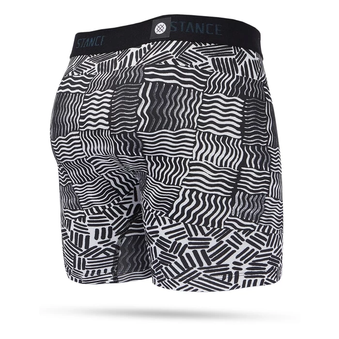 Stance Crosshatch wholester boxers in black features Stance Core-Flex and Feather-Seam. Also features a 6 inch inseam and boxer brief style. Branding includes a Stance woven label. Made from 15% elastane and 85% nylon.