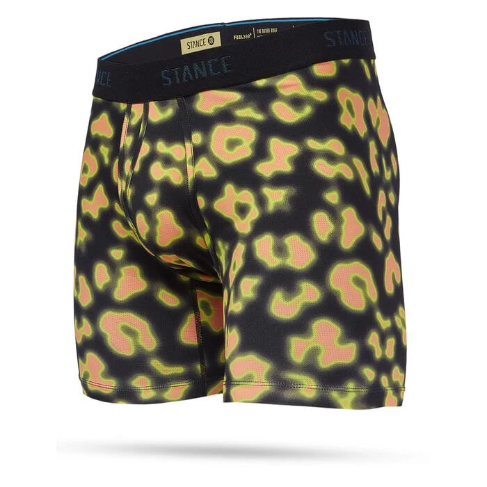 Stance Heat wholester boxers in black features Stance Core-Flex and Feather-Seam. Also features a 6 inch inseam and boxer brief style. Branding includes a Stance woven label. Made from 15% elastane and 85% nylon.